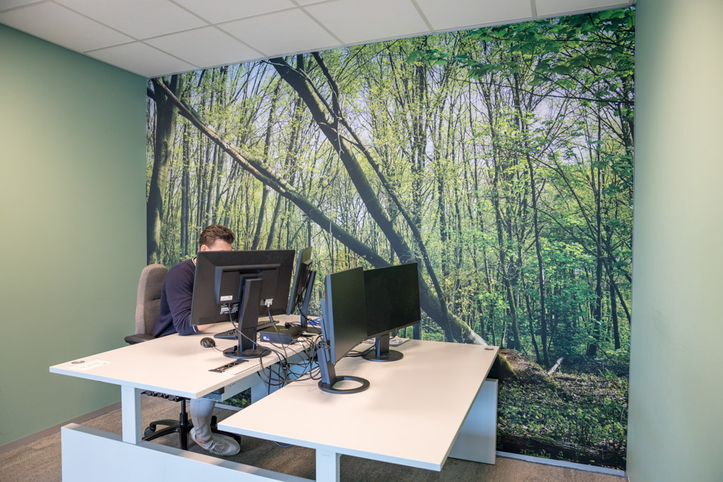 Akoestische fotowand bosuitzicht